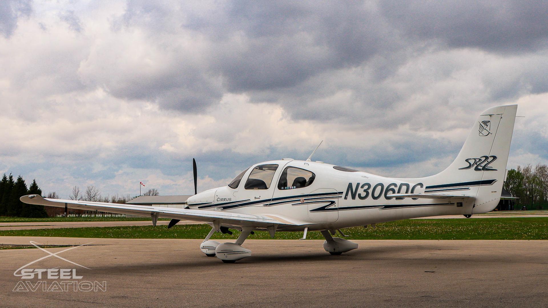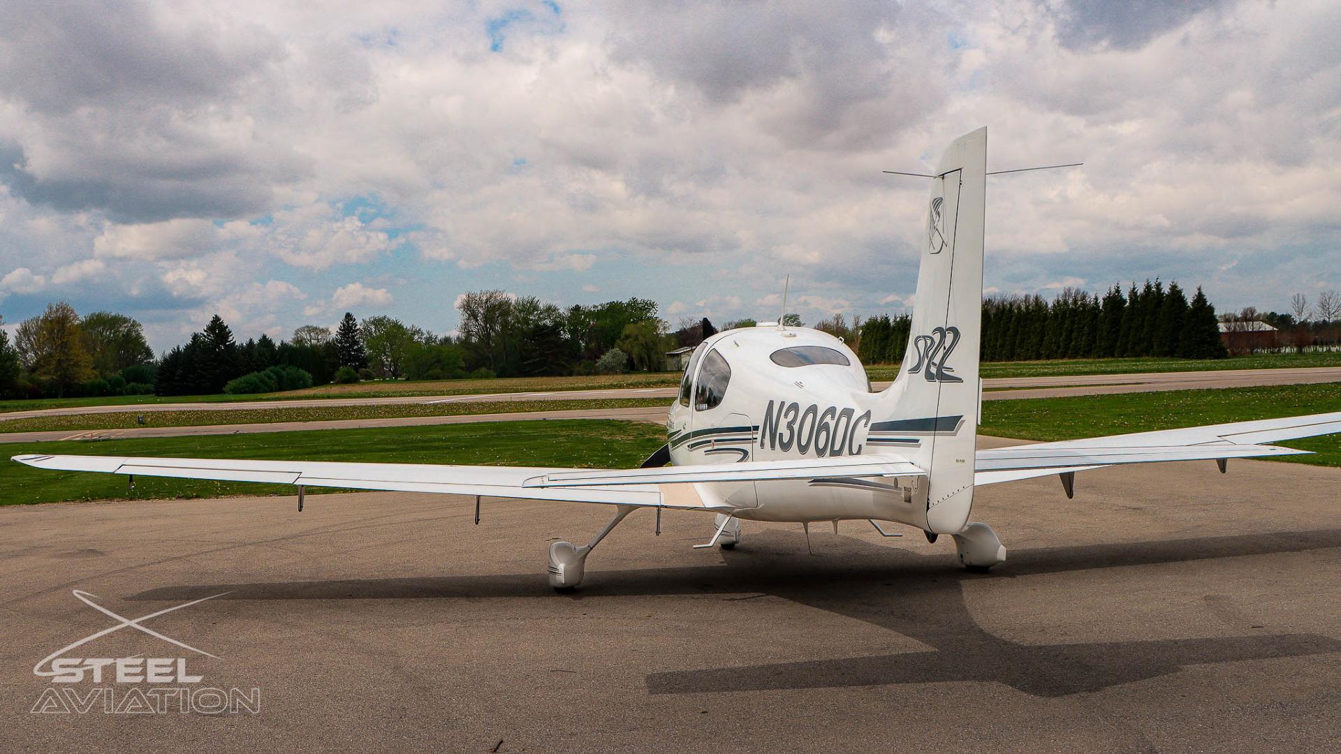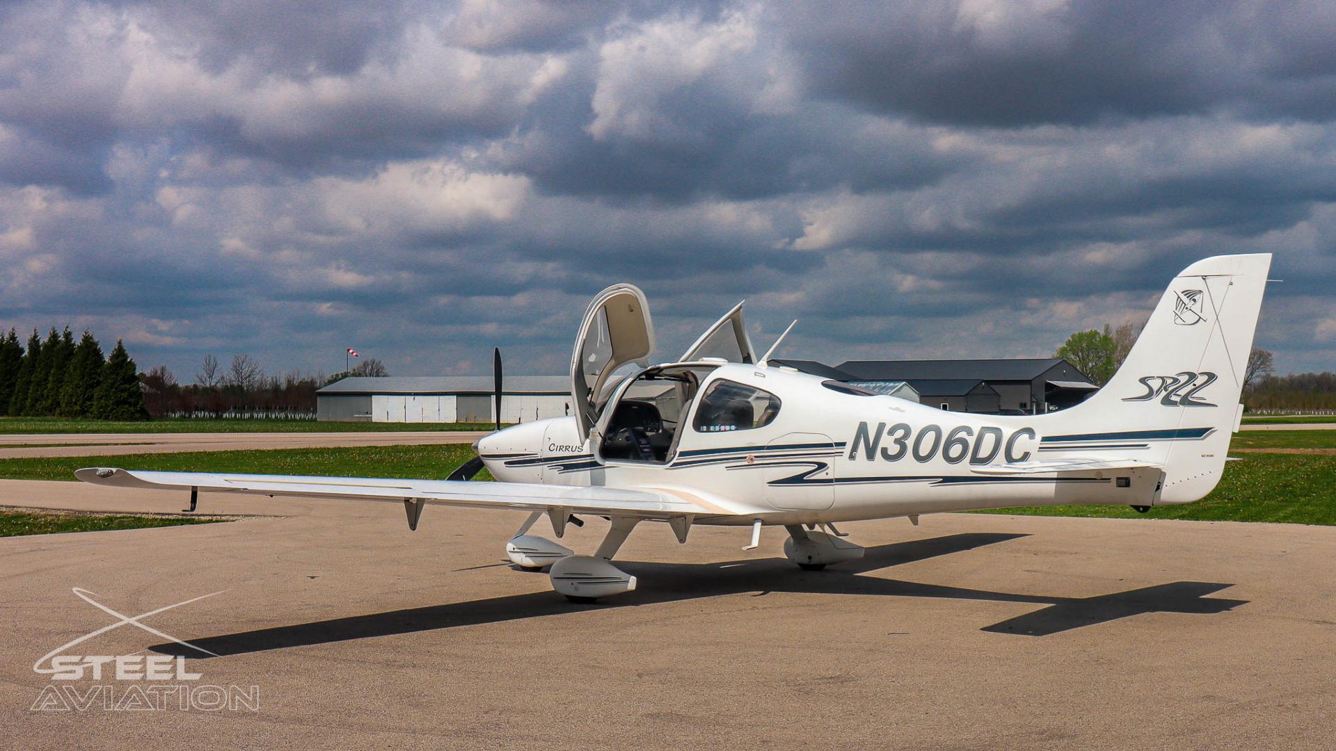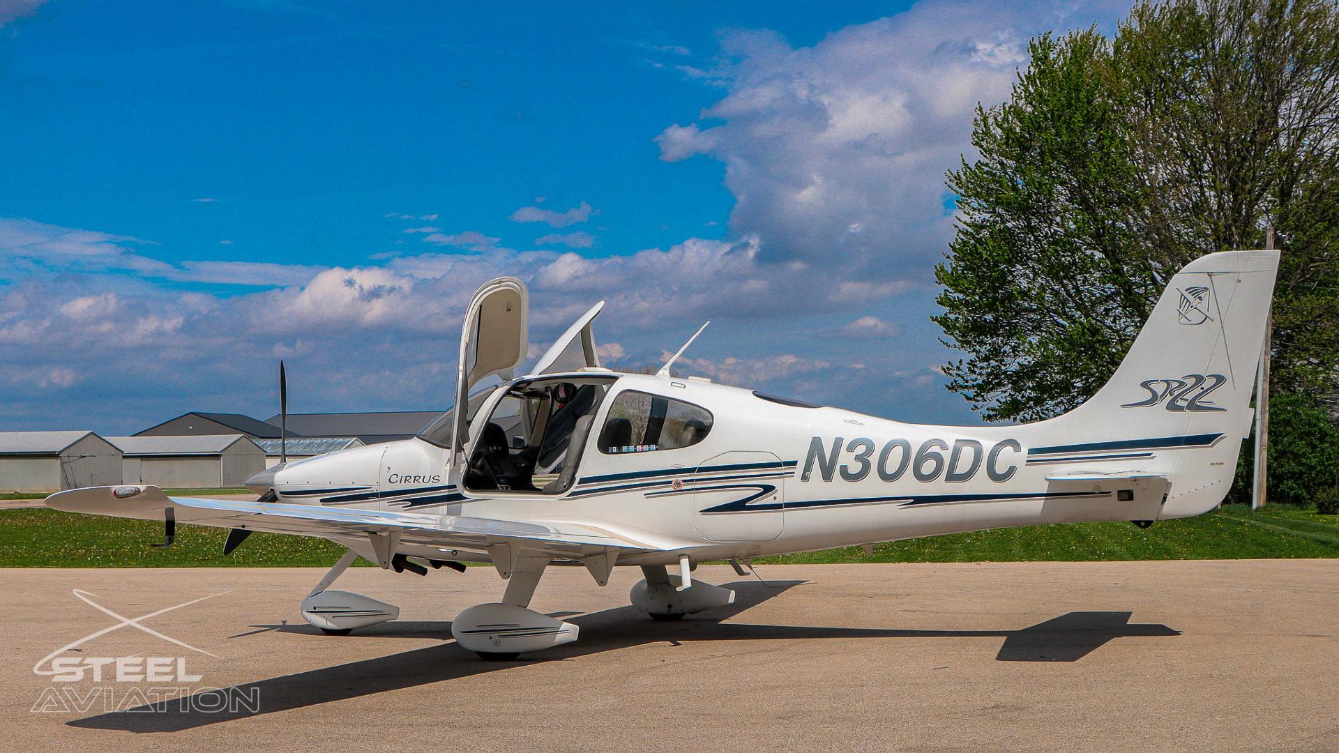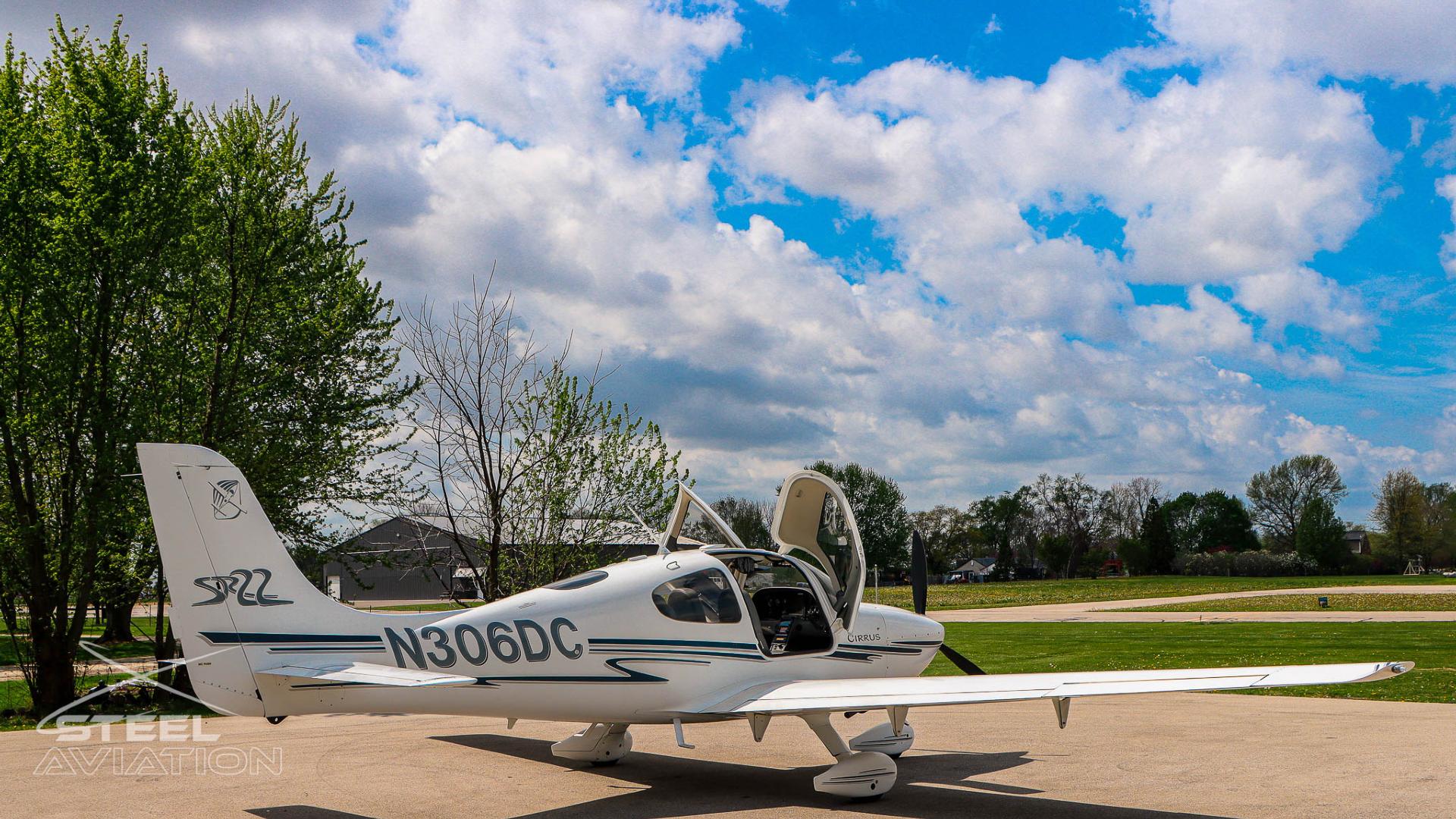Vinyl decals, including Cirrus branding and the N306DC tail number, are nicely done and fit naturally into the scheme. Everything is clean and straightforward, giving the plane an overall cohesive look.